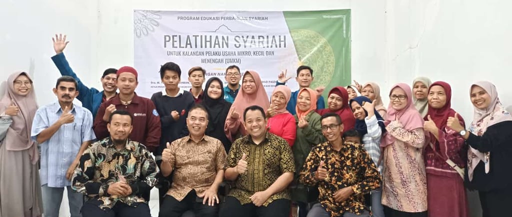 Mahasiswa Program Studi Perbankan Syariah juga berperan aktif dengan membagikan modul edukasi syariah kepada peserta saat proses absensi. Modul ini membantu para pelaku UMKM dalam memahami materi yang disampaikan dan menerapkannya dalam praktik bisnis sehari-hari.