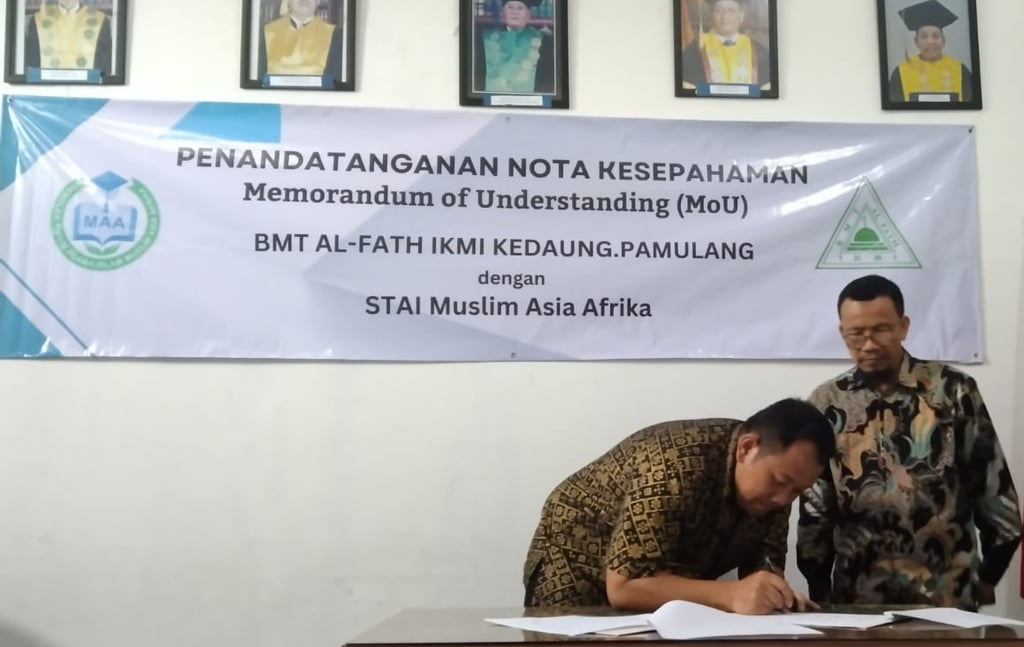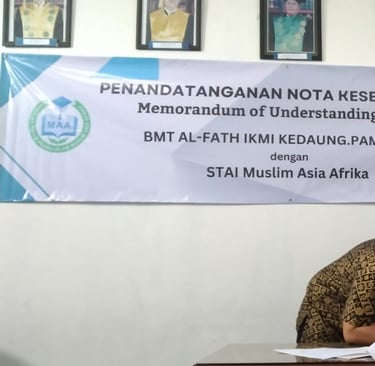 Tangerang Selatan – STAI Muslim Asia Afrika dan BMT Al-Fath IKMI Kedaung telah resmi menjalin kerjasama strategis yang bertujuan untuk mengembangkan pendidikan dan pelatihan di bidang Perbankan Syariah. Kolaborasi ini mencakup tiga aspek utama: pendidikan, magang industri, dan pembinaan Minibank "Cendekia Syariah" sebagai laboratorium praktik.