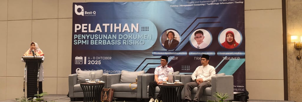 Tangsel, 9 Oktober 2025 - Menjawab tantangan mutu pendidikan tinggi di era modern, STAI Muslim Asia Afrika berkomitmen menguatkan sistem penjaminan mutu internal melalui partisipasi dalam Pelatihan Penyusunan Dokumen Sistem Penjaminan Mutu Internal (SPMI) Berbasis Risiko, yang diselenggarakan oleh Kopertais Wilayah I DKI Jakarta & Banten bekerja sama dengan Best-Q Institute, pada 6–8 Oktober 2025.